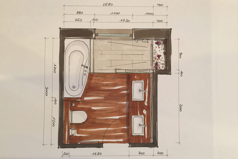 Waschtisch: Alape mit Unterschrank-und Spiegelschrank-Maßanfertigung