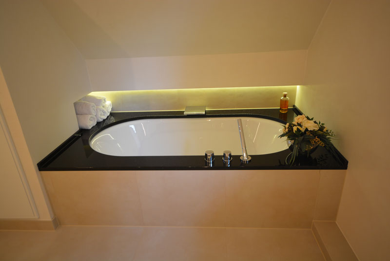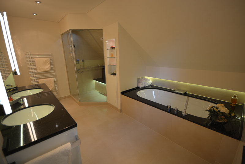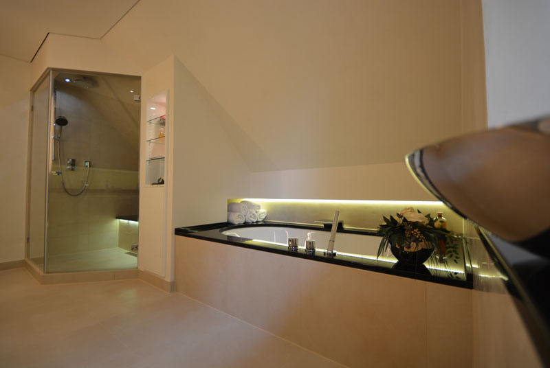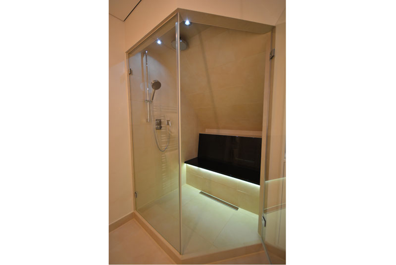 Dusche: individuelles Dampfbad mit beheizter Sitzbank